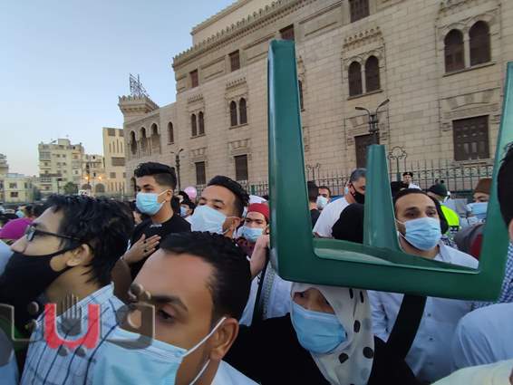 تدافع مئات المصلين للدخول إلى الجامع الأزهر لأداء صلاة عيد الفطر | فيديو