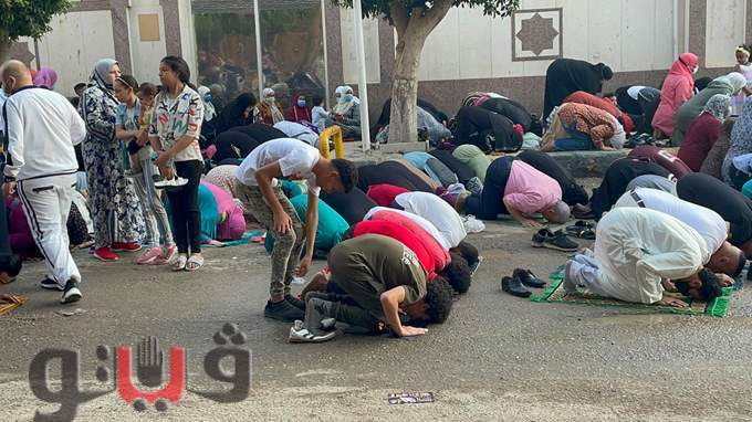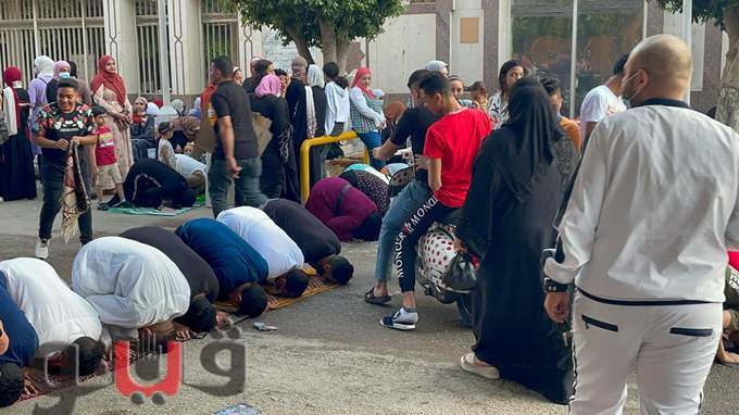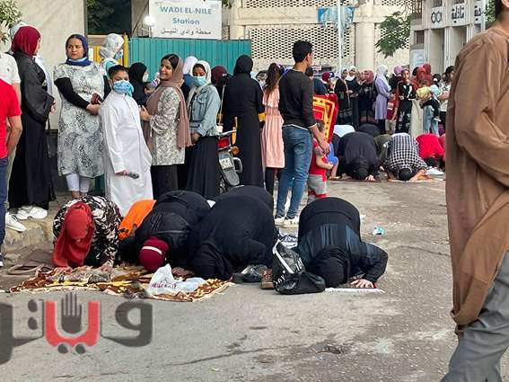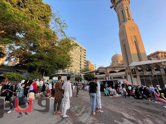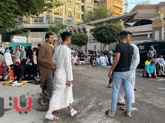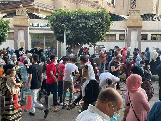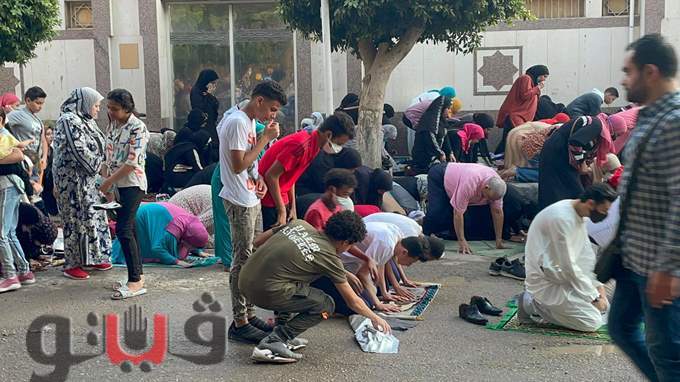 اختلاط النساء بالرجال في صلاة العيد أمام مسجد الحامدية الشاذلية | فيديو وصور