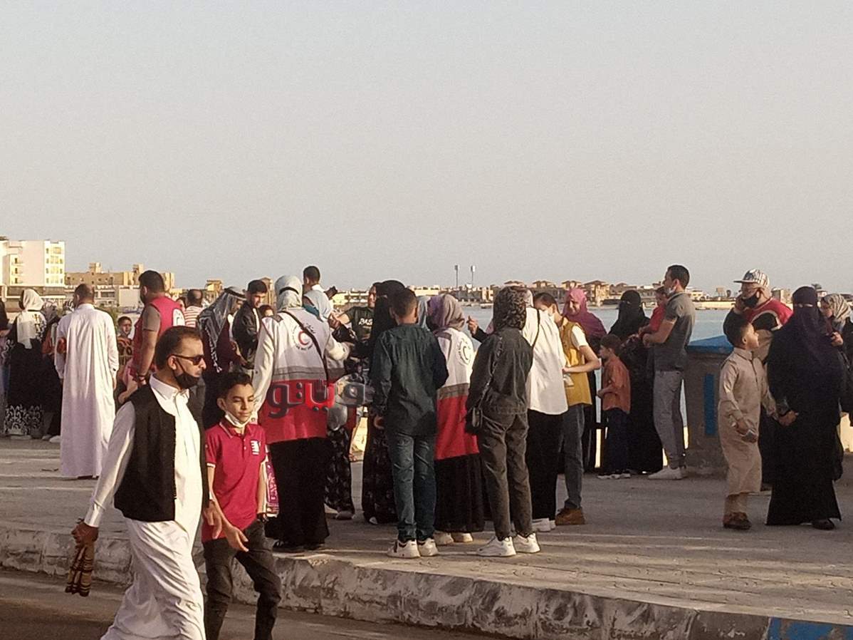 أهالي مطروح يستمتعون بجمال البحر بعد صلاة العيد | فيديو وصور