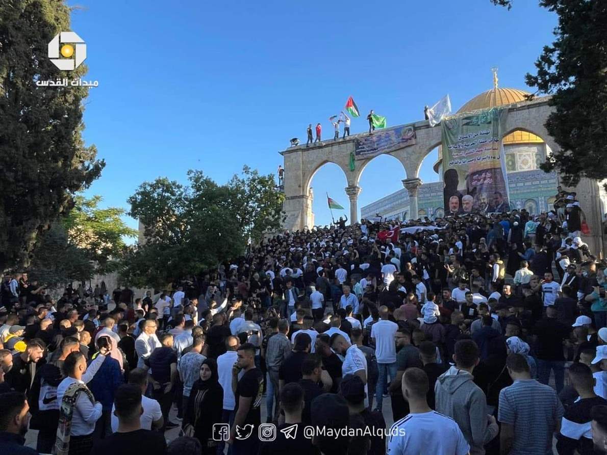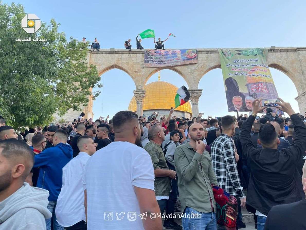 وبدت ساحات ومصليات المسجد الأقصى وقد امتلأت بالكامل بالمصلين الذين توافدوا إلى المسجد منذ صلاة الفجر.