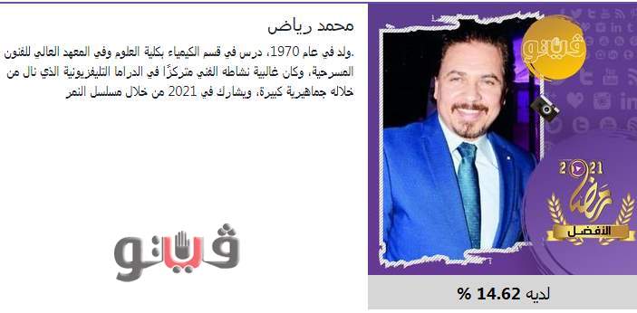 «محمد رياض» يحصل على لقب أفضل ممثل دور ثان في استفتاء فيتو رمضان 2021