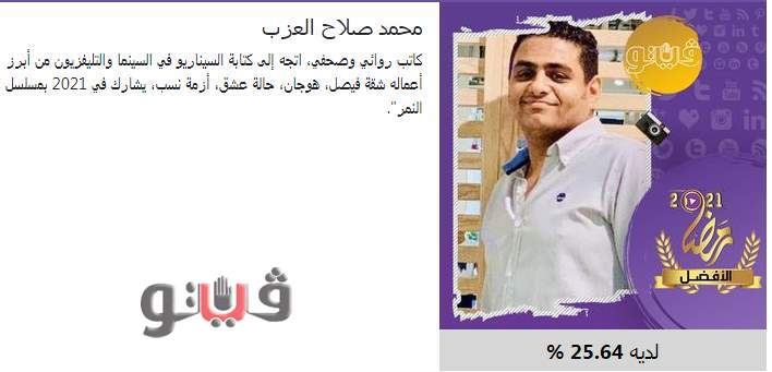 "محمد صلاح العزب" يحصل على لقب أفضل مؤلف في استفتاء "فيتو رمضان 2021"