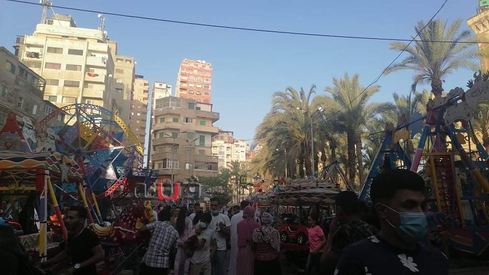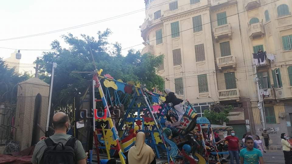 توافد العشرات من الأطفال على الساحة المجاورة لمسجد أبي العباس المرسي بمنطقة بحري بالإسكندرية، صباح اليوم الخميس، للاحتفال بعيد الفطر المبارك والاستمتاع بالألعاب، وسط تجمعات وإقبال الكثير من المواطنين عليها، دون وجود لأي إجراءات احترازية لمواجهة فيروس كورونا المستجد.