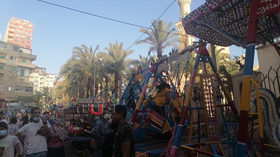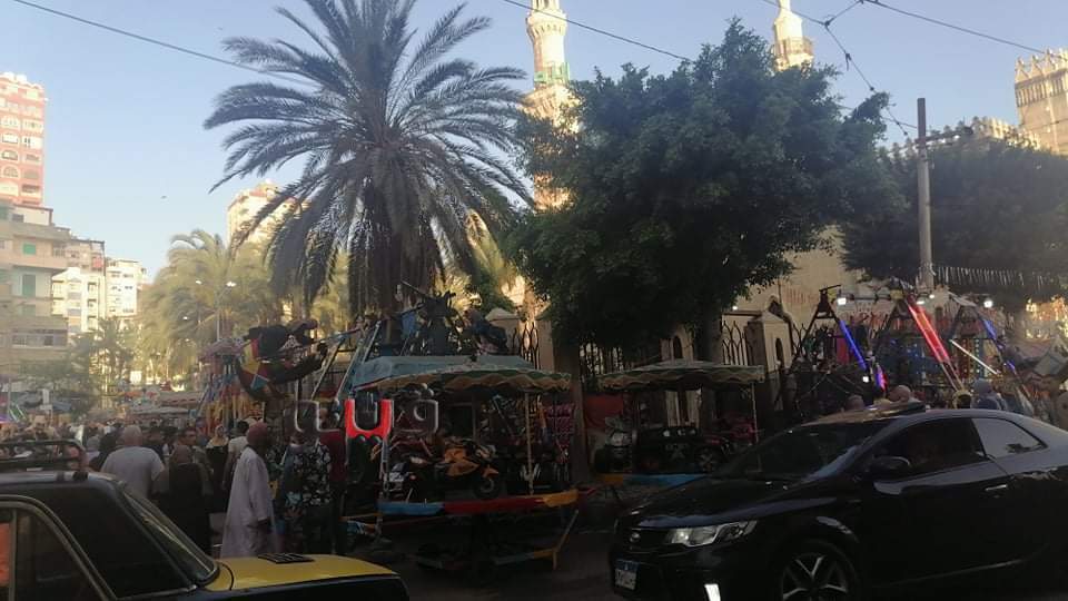 تجمعات ومراجيح بالساحة المجاورة لمسجد أبي العباس بالإسكندرية | صور