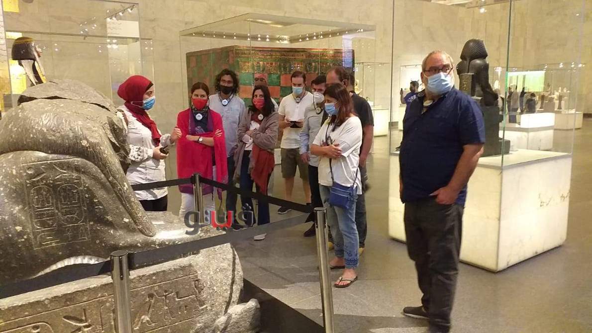 شهد المتحف القومي للحضارة المصرية بالفسطاط، توافد عشرات المجموعات السياحية من جنسيات مختلفة من أوروبا وآسيا وأفريقيا لزيارة قاعة المومياوات الملكية.