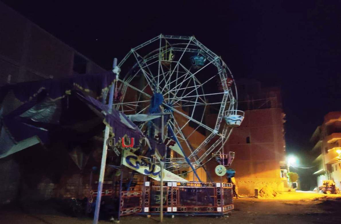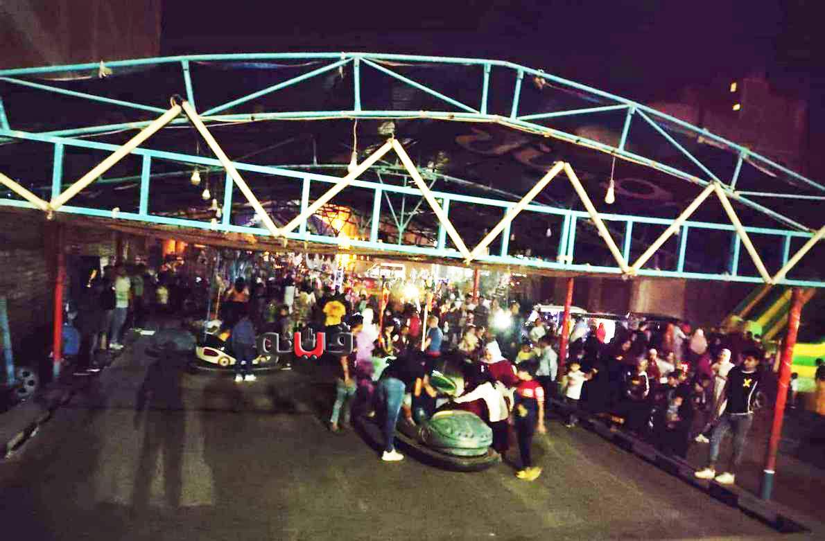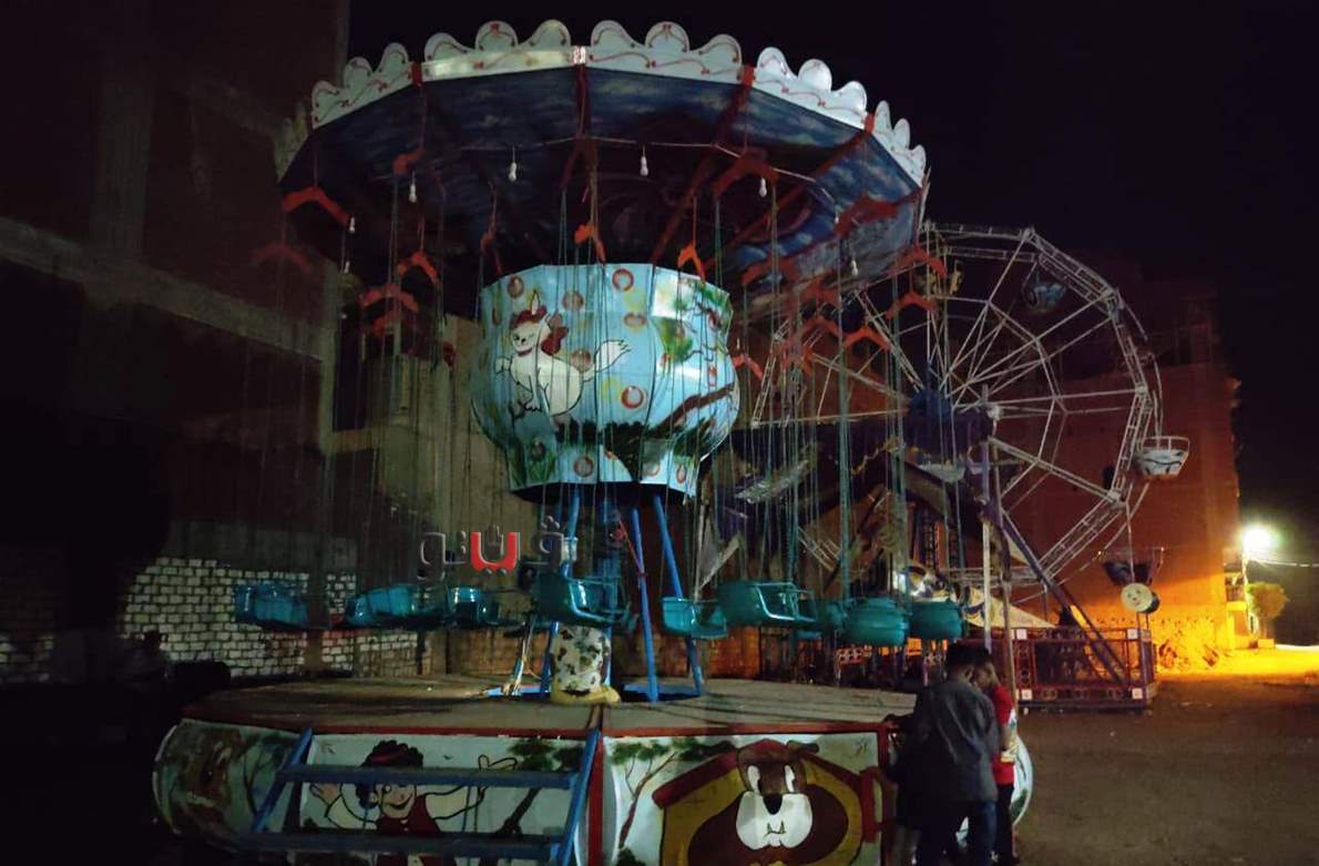 الوحدة المحلية لمركز ومدينة إهناسيا ببني سويف، مساء الخميس، ملاهي شعبية مكتظة