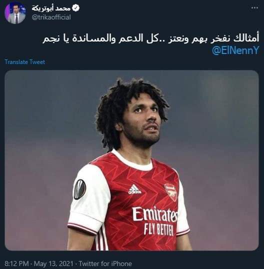 وتفاعل النجم محمد أبو تريكة، لاعب المنتخب المصري والأهلي السابق مع التغريدة قائلا: «أمثالك نفخر بهم ونعتز.. كل الدعم والمساندة يا نجم».