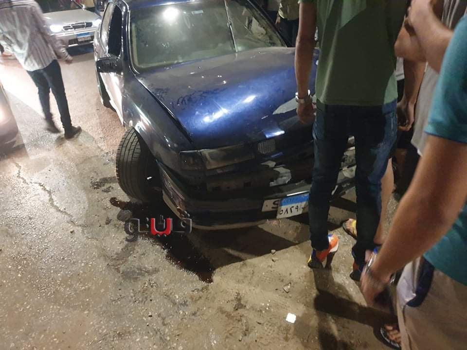السرعة الجنونية تتسبب في إصابة شخص وتضرر 3 سيارات ببنها | صور
