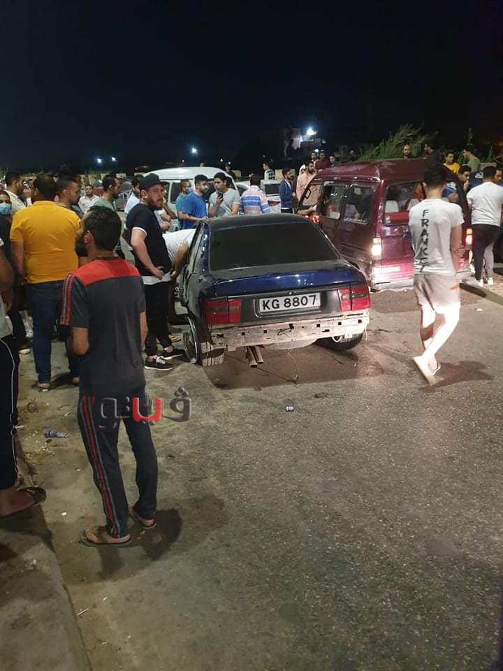 أصيب شاب في حادث تصادم سيارة مسرعة بـ 3 سيارات متوقفة على طريق الموقف الجديد ببنها.