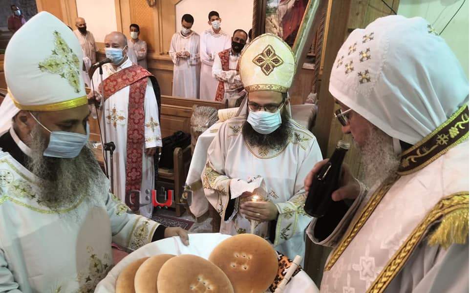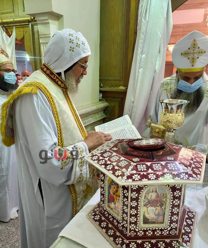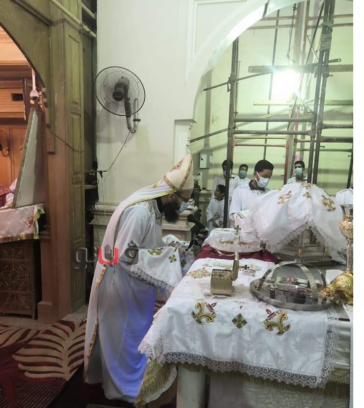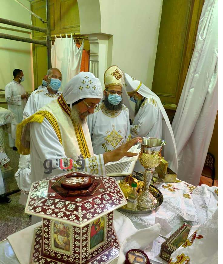 كما قام بتدشين أواني جديدة للمذبح ، وألقي العظة بعنوان " الاستحقاق للتناول ) ، وذلك وسط اجراءات احترازية لمنع نشر فيروس كورونا المستجد .