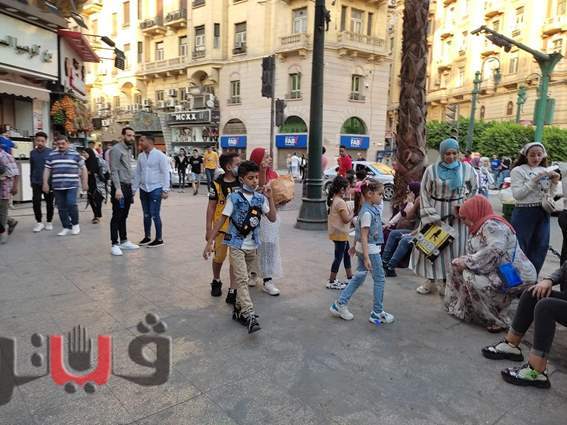 فسحة العيد.. الأرصفة وميادين وسط القاهرة بديل الحدائق والمتنزهات| صور
