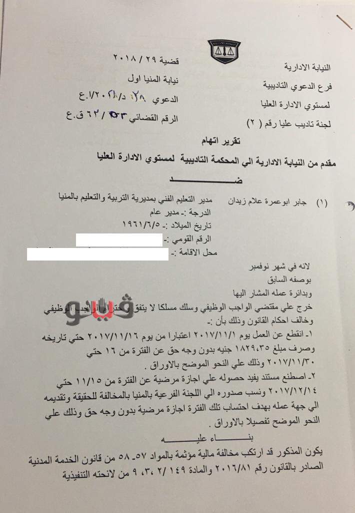 إحالة مدير عام التعليم الفني بالمنيا للمحاكمة بتهمة التزوير | مستندات