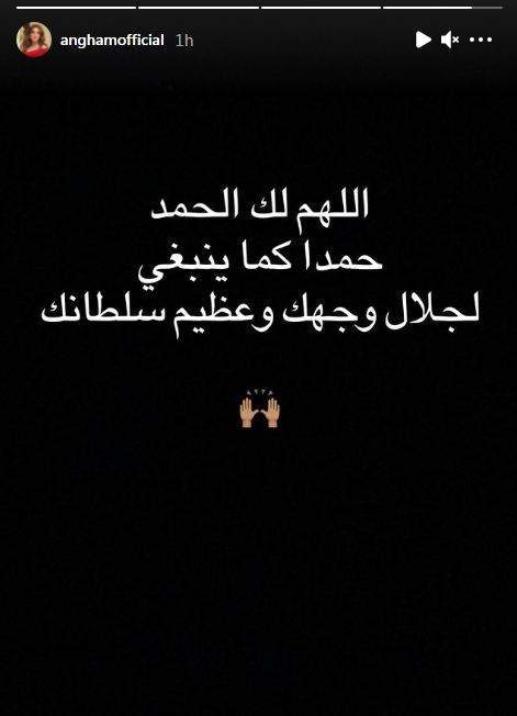 وكتبت أنغام عبر خاصية الإستوري قائلة: "الحمد لله كما ينبغي لجلال وجهك وعظيم سلطانك".