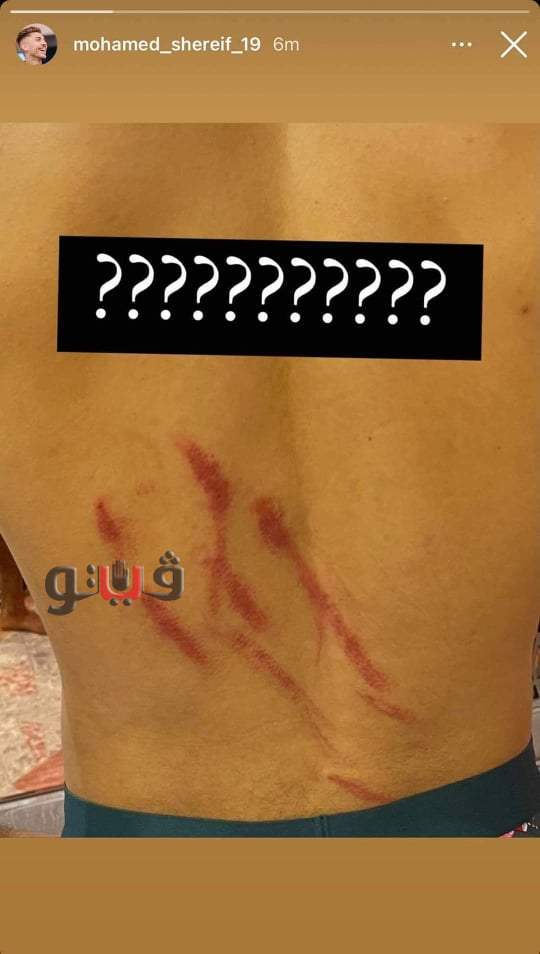 محمد شريف ينشر صورة لآثار قدم حارس مرمى صن داونز على ظهره
