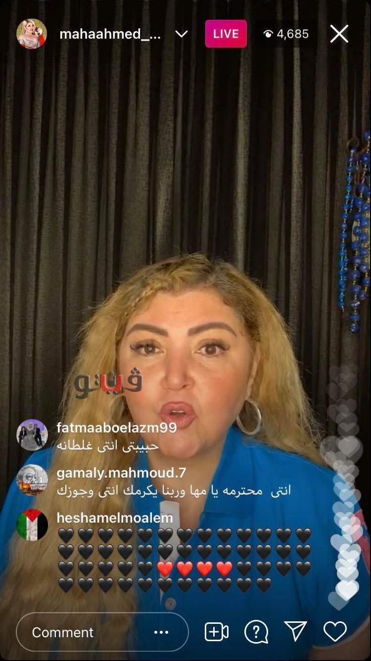 فيما ردت الفنانة مها أحمد على الانتقادات التي طالتها من شقيقة ووالدة الفنان أحمد السقا والفنان أمير كراراة من خلال بث مباشر عبر موقع "إنستجرام".