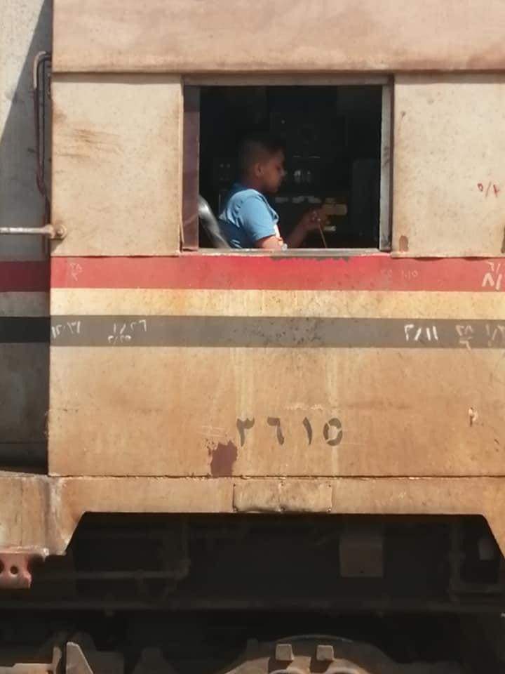 تداولت صفحات مواقع التواصل الاجتماعي "فيسبوك" بمحافظة الغربية صورا يظهر فيها طفل يجلس على مقعد السائق داخل قمرة القيادة بأحد القطارات داخل محطة محلة روح ممسكا بمعدات القيادة، وبجانبه شخص يصرخ ويدعوه إلى عدم تشغيل شيء إذ بدت حالة من الهلع داخل كابينة القيادة.