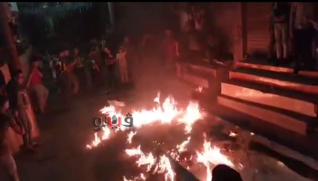 تضامنا مع فلسطين.. رسم وحرق علم إسرائيل على أرض ميت الكرما في الدقهلية
