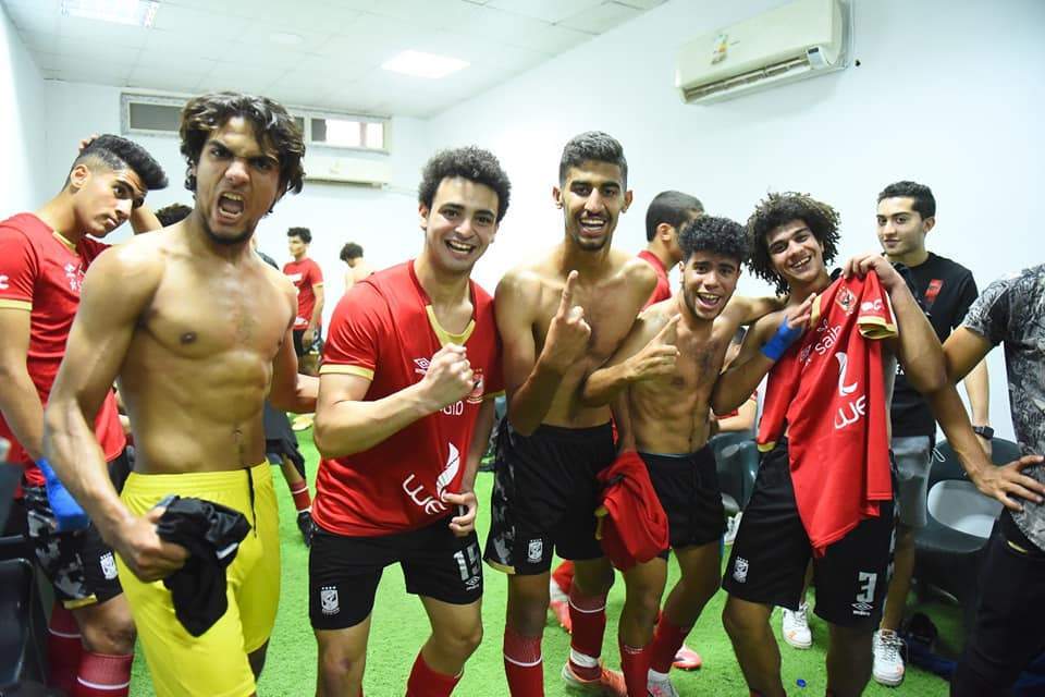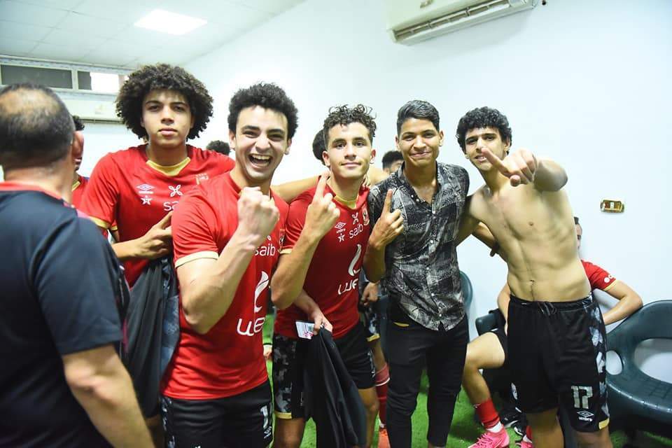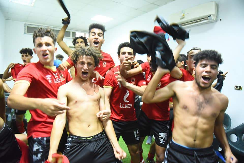 حرص لاعبو فريق الأهلي 2003 على الاحتفال بالفوز على الزمالك بهدف نظيف في غرفة خلع الملابس الخاصة بهم عقب اللقاء الذي جمعهما اليوم الأحد ضمن مواجهات دوري الجمهورية للناشئين 2003.