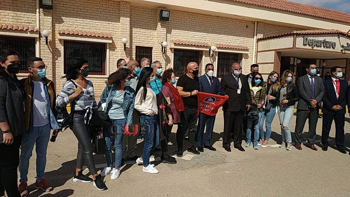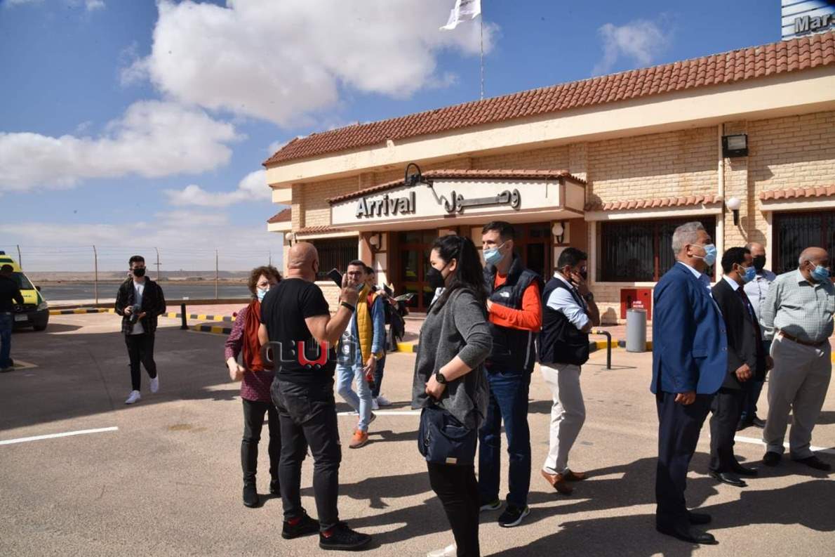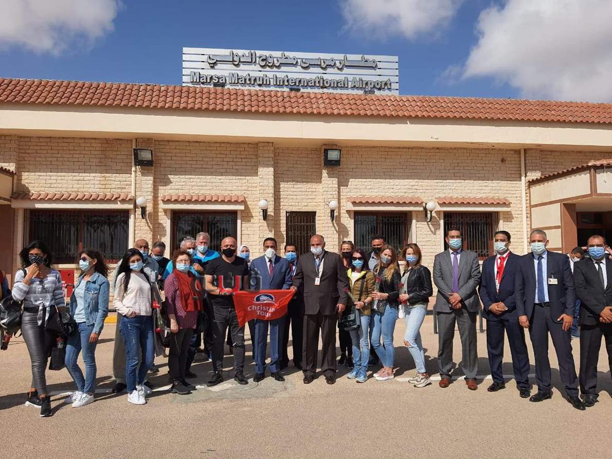 واستقبل السائحين اللواء خالد شعيب محافظ ورفقته اللواء أشرف السيد مدير مطار مرسي مطروح الدولي، الدكتور أحمد البلتاجي وكيل وزارة الصحة، الدكتور شريف الشناوي مدير إدارة الطب الوقائي بمديرية الصحة وعددا من قيادات إدارة السياحة والمصايف بمطروح.