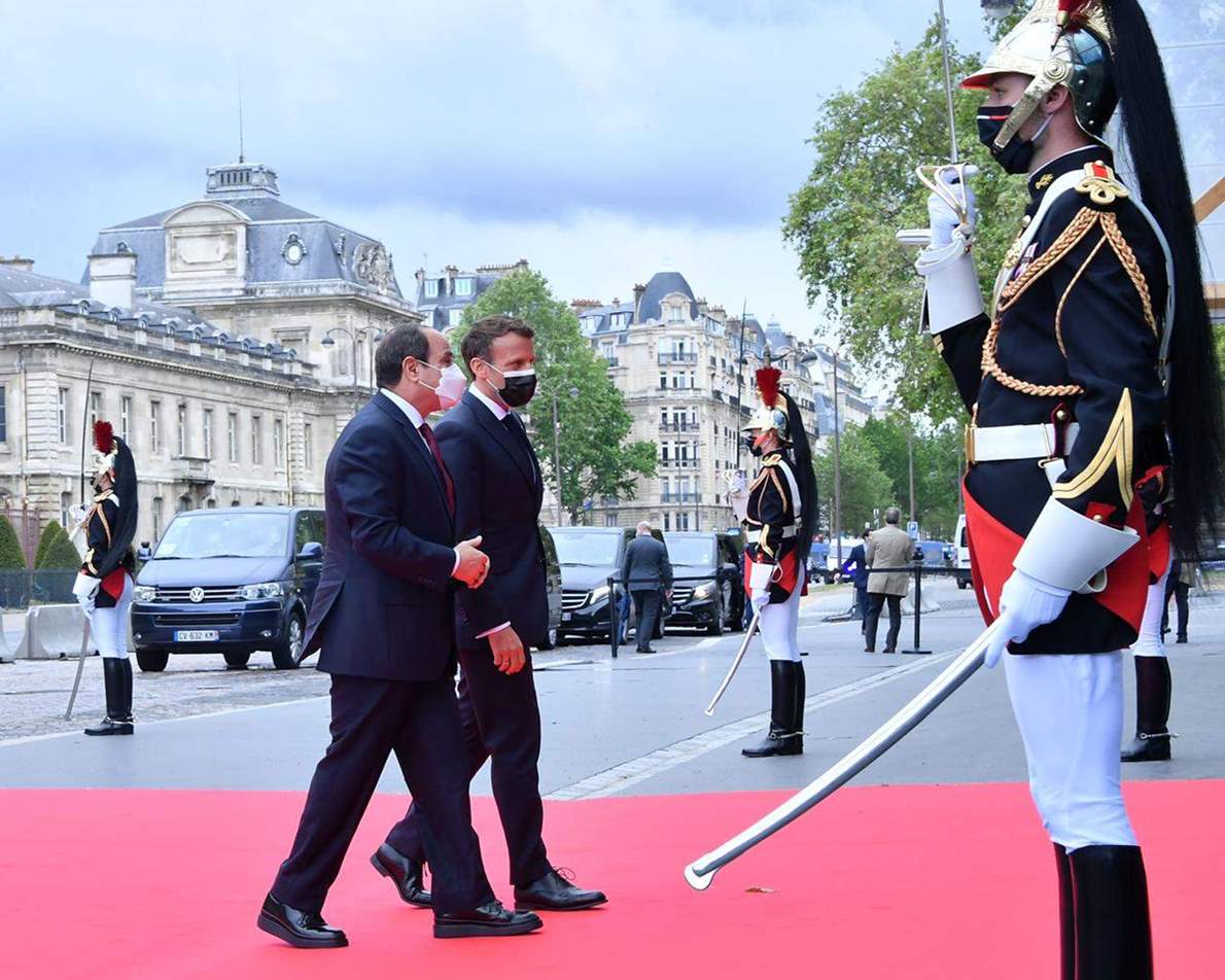5 صور ترصد استقبال ماكرون للسيسي بقصر المؤتمرات بباريس