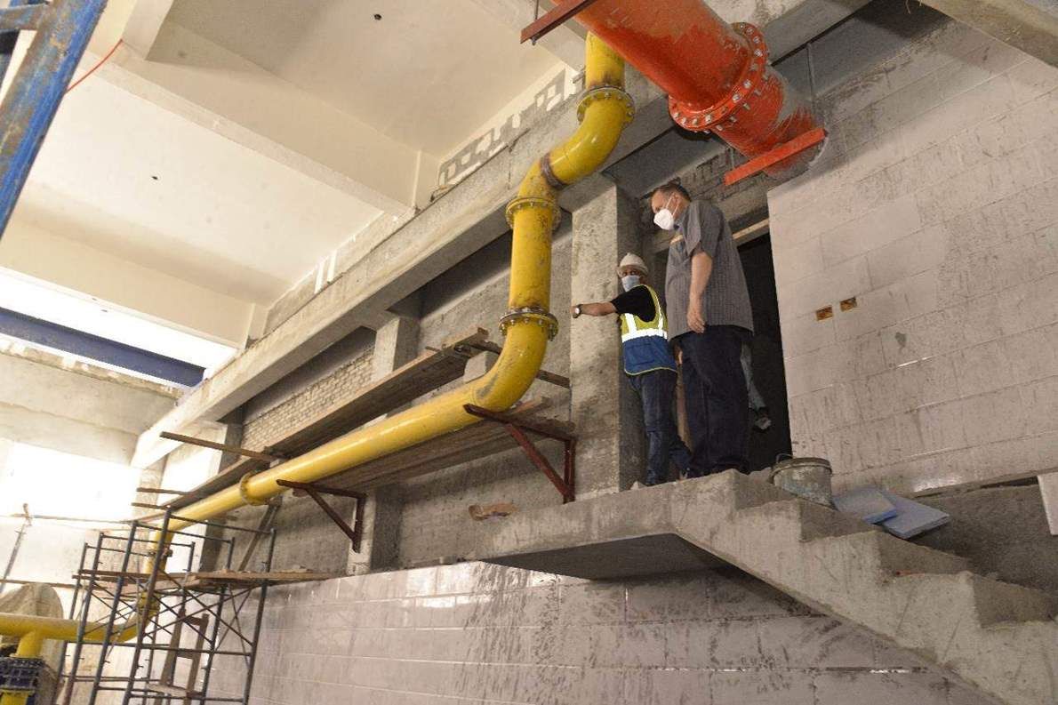حيث بدأ المحافظ جولته داخل المحطة بتفقد الأعمال الإنشائية الجاري تنفيذها بمحطة المياه التشيكي بحي شرق واستمع لشرح تفصيلي لمكونات المحطة القديمة وما تم تنفيذه من أعمال احلال وتجديد والاعمال التي سيتم الانتهاء منها خلال الفترة القادمة لتضاعف الطاقة الاستيعابية للمحطة من 200لتر/ث إلى 600لتر/ث طبقًا للتوسعات والأعمال الجارية موضحاً أنه جاري الانتهاء من استكمال المنشآت الداخلية وأحواض المياه على أن يتم العمل خلال الأيام القادمة والانتهاء من المآخذ على النيل بالإضافة إلى قرب الانتهاء من مبنى المعامل المركزية بالمحطة لخدمة محافظة أسيوط بالكامل.