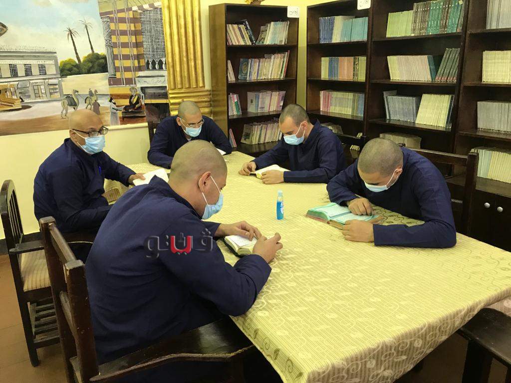 وعلى بعد أمتار يقبع المكتبة السجن يوجد عدد من النزلاء يطالعون الكتب الدينية والدراسية فيما يقوم آخر بممارسة الرسم .