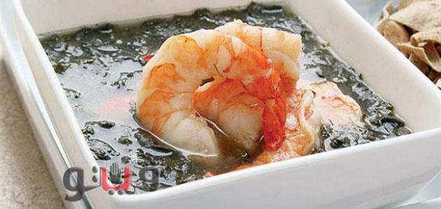 قومي بغسل الجمبري بالطحين والماء، ثم نقطع الملوخية، ونضعها في وعاء لبعض الوقت، ثم نبشر البصل، والطماطم، ونضعهما على النار، ثم نضيف ملعقتين صغيرتين من الثوم المهروس، والقليل من الكزبرة إلى البصل والطماطم، ونحرك المكونات لمدة خمس دقائق، ثم نضيف الجمبري فوق خليط المكونات السابقة مع التقليب لمدة خمس دقائق إضافية، ثم نسكب الماء فوق الخليط السابق، ونتركه يغلي لمدة عشر دقائق، ثم نضيف الملوخية، ثم نحرك المكونات جيداً، ثم نرفع القدر عن النار، نسخن السمن على نار متوسطة، ونقلي فيها باقي كمية الثوم، والكزبرة مع التحريك حتى يذبلا ويصبحا ذهبيا اللون، ثم نسكب مقلي الثوم والكزبرة فوق الملوخية.
