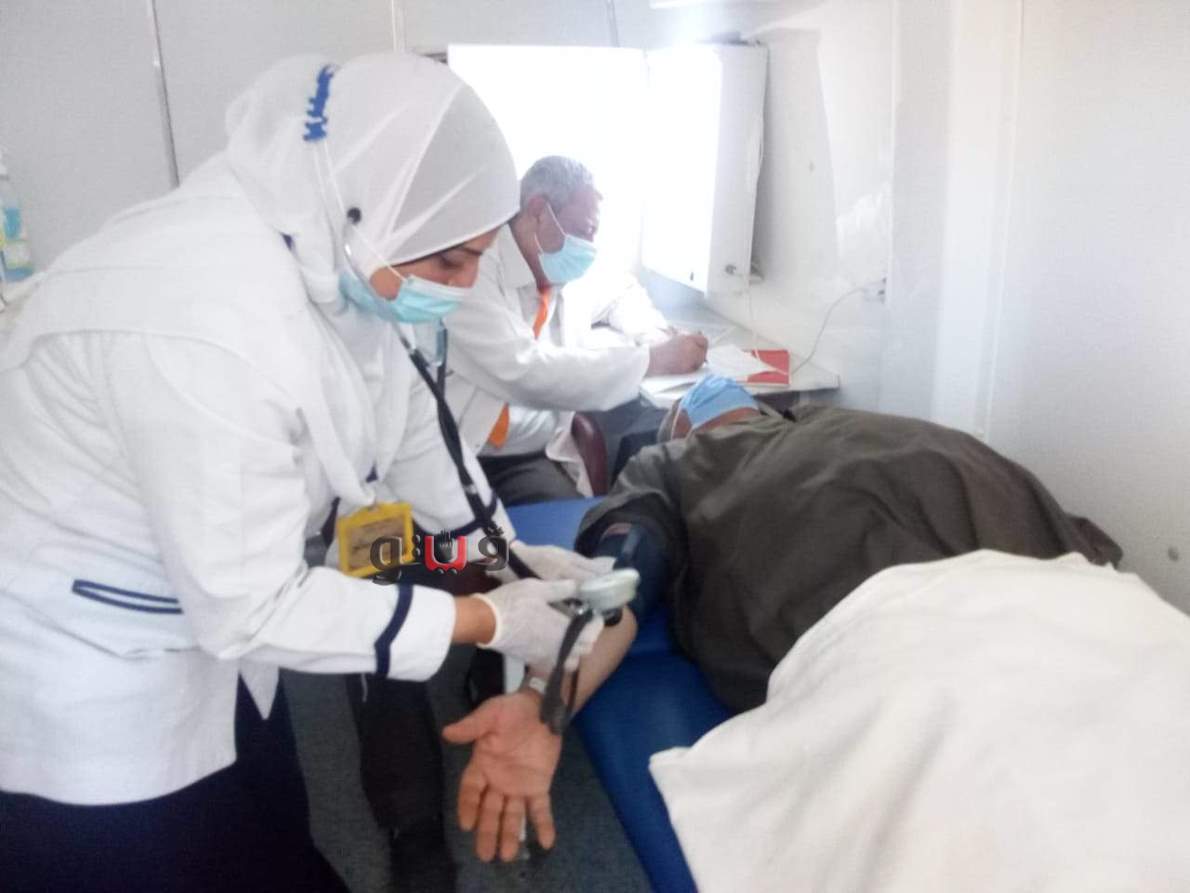 أن القافلة تضمنت 10 عيادات متخصصة ( 2 باطنة، 2 أطفال، عظام، جلدية، أسنان، جراحة، نسا، تنظيم أسرة)