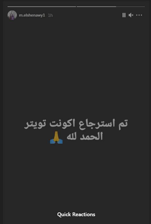 ونشر محمد الشناوي على حالته الخاصة بموقع "انستجرام" استرجاع حسابه وكتب قائلا: "تم استرجاع اكونت تويتر.. الحمد لله".