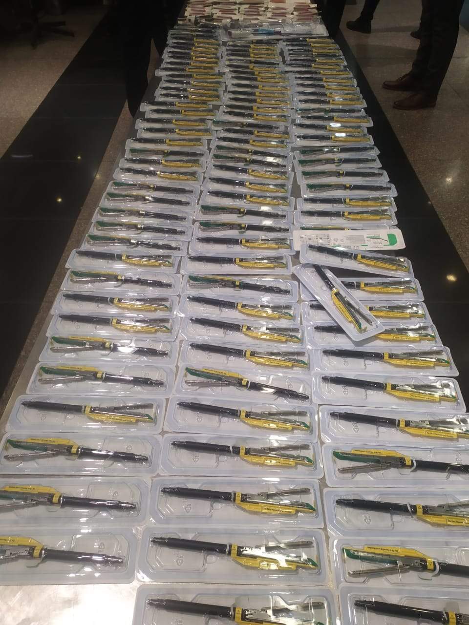 قام رأفت وهيب عازر مدير الجمرك بتكليف نورهان محمد فؤاد مأمور الجمرك بتفتيش حقائب الراكب يدويا مما اسفر عن ضبط 335 قطعة وأداة طبية خاصة بتدبيس المعدة 140 كيس بهم خيوط جراحية وواحد جهاز طبي بإجمالي عدد 476.