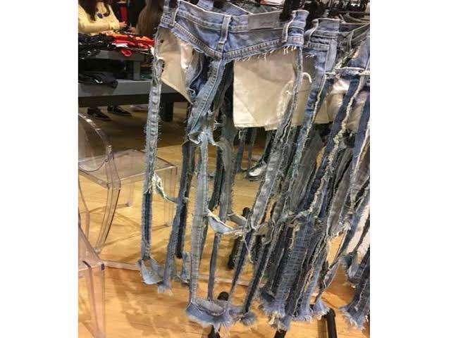 «الجينز الخالي من القماش» ممزق بشكل كامل من كل الأماكن، ولا يحوي سوى 20 جراما من القماش، تأتي على شكل حزام يلفّ الخصر مع الجيبين.
