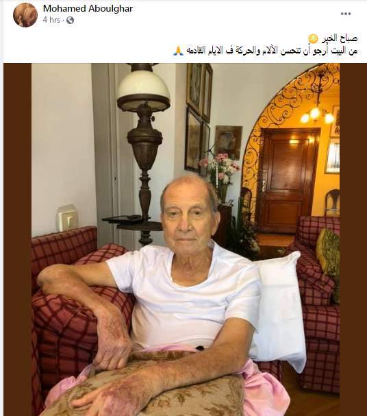 وكتب محمد أبو الغار تدوينة على الفيس بوك "صباح الخير.. من البيت أرجو أن تتحسن الآلام والحركة ف الايام القادمه".
