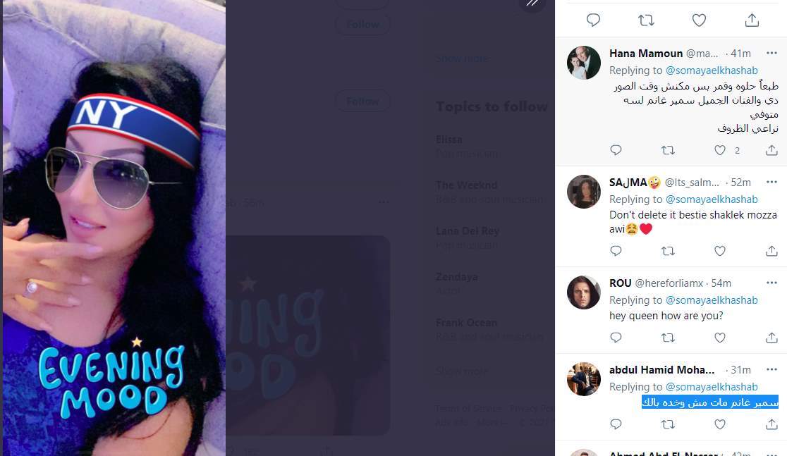 وانهالت التعليقات على صورة سمية، حيث قالت أحد المتابعات لها :"طبعاً حلوه وقمر بس مكنش وقت الصور دي والفنان الجميل سمير غانم لسه متوفي، نراعي الظروف".