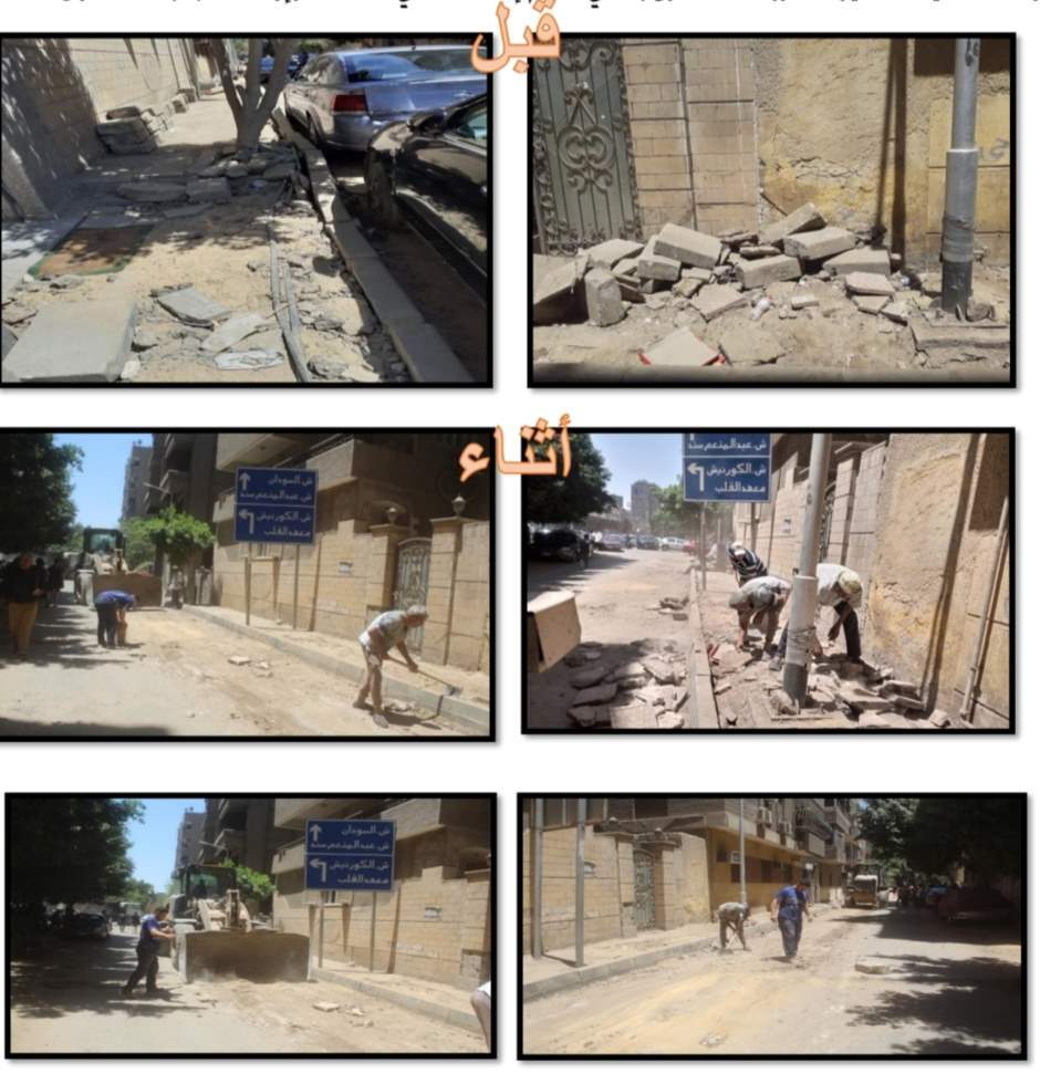 وبالتواصل مع محافظة الجيزة، أفاد حي العجوزة أن المنطقة بالكامل دخلت في حيز عمليات الإحلال والتجديد، وجار استكمال إعادة الرصف في عدة شوارع محيطة بالمنطقة، كما تم تحرير 3 محاضر بيئية أرقام (34 – 72 – 88) لسنة 2021 لإلقاء مخلفات الحفر ضد المخالف (ح. ص. ع)، وأفاد مدير مشروعات الطرق بالحي أنه تمت إعادة الشيء لأصله وإزالة أسباب الشكوى.
