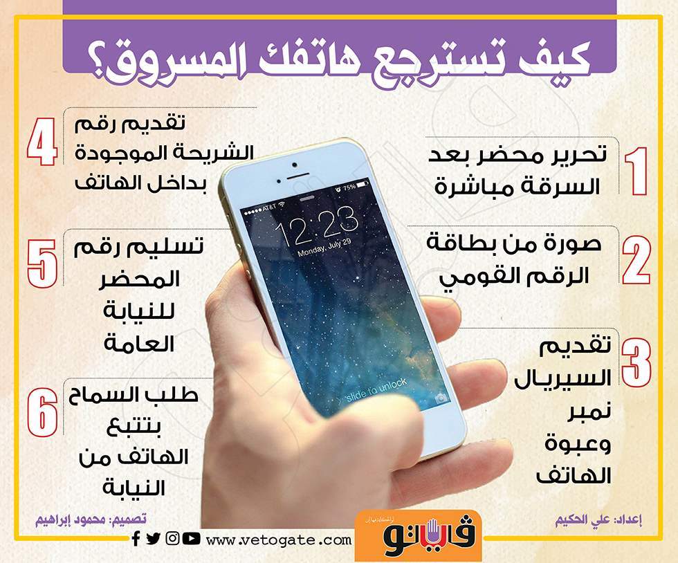 كيف تسترجع هاتفك المسروق| انفوجراف السبت 22/مايو/2021 - 02:48 م 5/22/2021 2:48:52 PM تعبيرية علي الحكيم شارك طباعة 18 حجم الخط يتعرض البعض لسرقة هواتفهم، ونظرا لأهمية ما تحتويه هذه التليفونات من بيانات هامة سواء كانت أرقام تليفونات أو صور وخلافه، يبحث الكثيرون عن طريقة سليمة للاسترجاع. شارك طباعة وزارة الداخلية النيابة العامة اخبار الحوادث الحوادث الحوادث اليوم