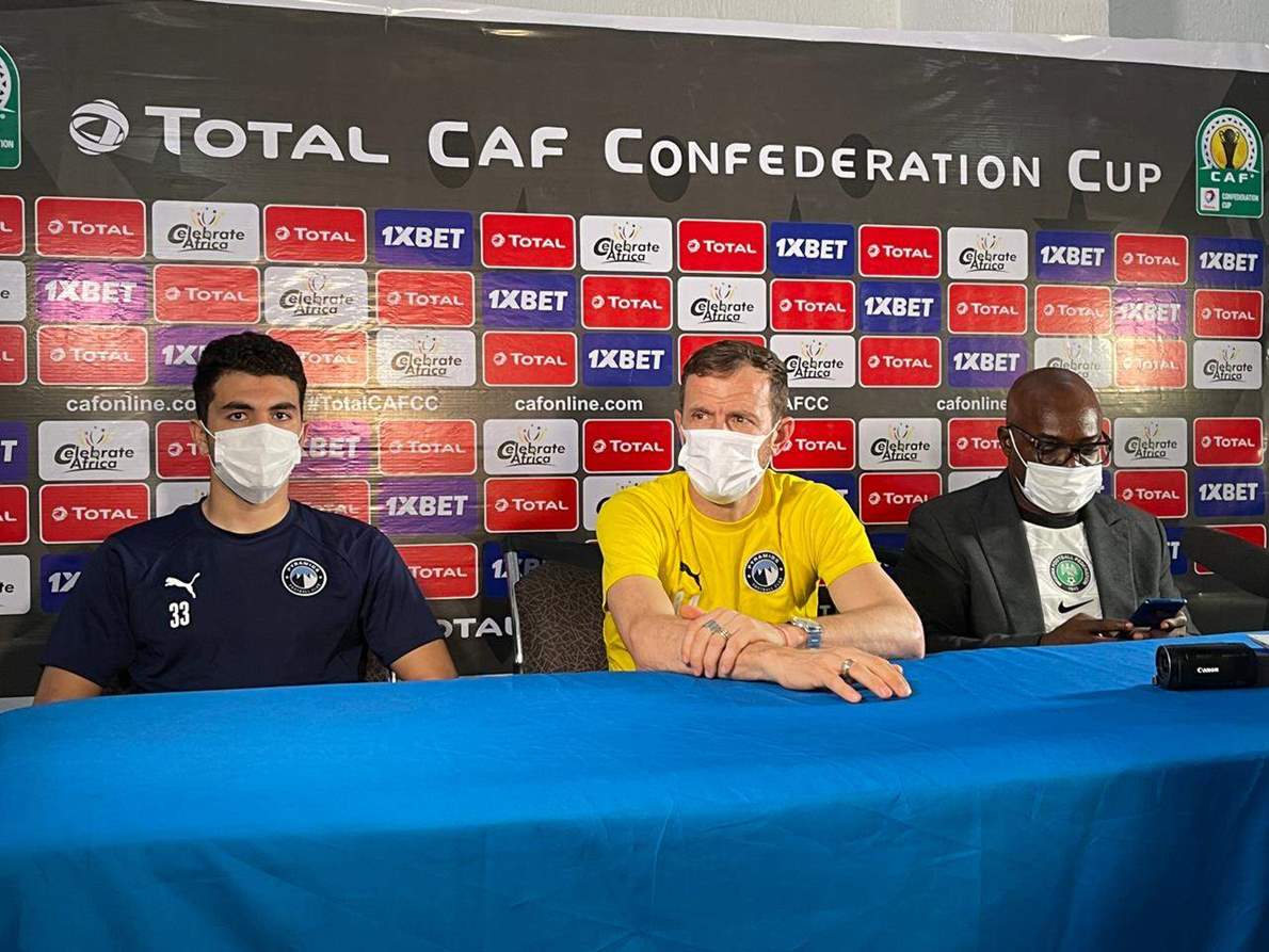 المدير الفني أوضح أن كرة القدم بها كل شيء وكرة القدم لا تعرف المستحيل وبيراميدز حضر من أجل تقديم لعبه الطبيعي ومستواه، مشددا على أن اللعب على النجيل الصناعي صعب جدا، حيث ستكون حركة الكرة أسرع كثيرا وبالتالي لابد من الأخذ في الاعتبار التمريرات السريعة والطولية والتعامل البدني الجيد مع المباراة وتقسيمها في ظل اللعب على نجيل صناعي وفي أجواء حارة ورطبة.