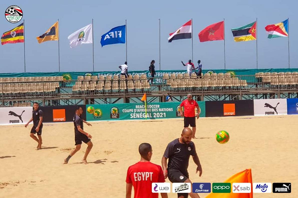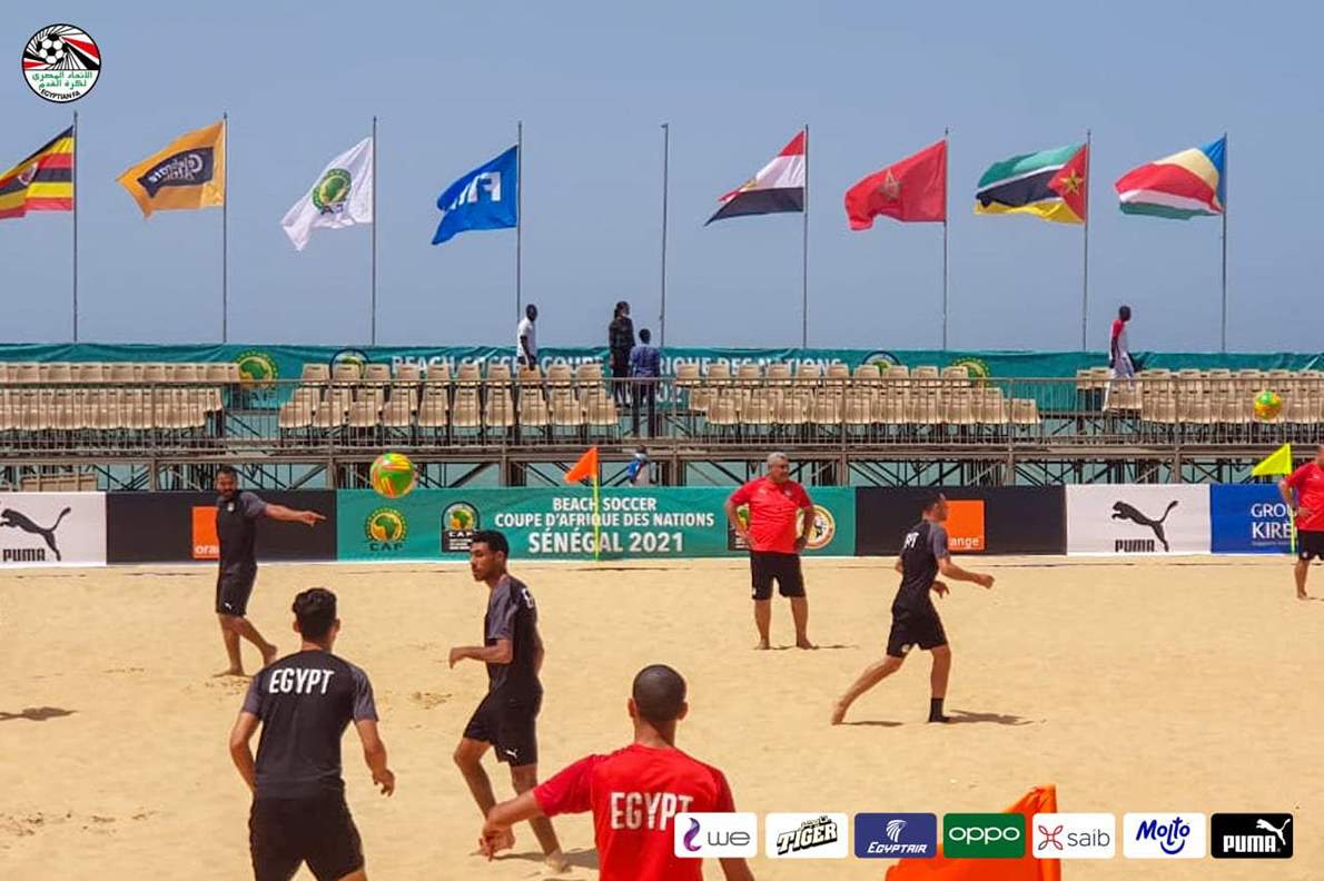 أدى المنتخب الوطني للكرة الشاطئية تدريبه الأول اليوم بعد وصوله مدينة سالي السنغالية في ساعة متأخرة من مساء أمس استعدادا لانطلاق بطولة الأمم الأفريقية غدا بلقاء مصر وموزمبيق ضمن المجموعة الثانية التي تضم معهما منتخبي المغرب وسيشل، بينما تضم المجموعة الأولى ثلاث منتخبات فقط بعد انسحاب الكونغو الديمقراطية لتقتصر المجموعة على منتخبات السنغال وأوغندا وتنزانيا، وتقام ضمنها يوم الافتتاح أيضا مباراة السنغال وأوغندا.
