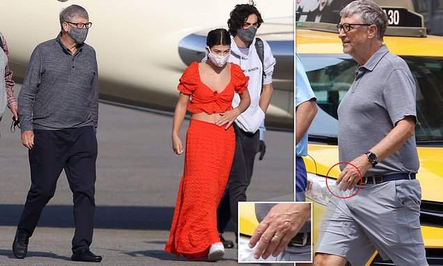وأظهرت الصور التي نشرتها صحيفة "ديلي ميل" البريطانية، بيل جيتس وهو يرتدي الخاتم في أصبع يده اليسرى وفي حالة معنوية مرتفعة، حيث كان مبتسما ودون قناع الوجه.