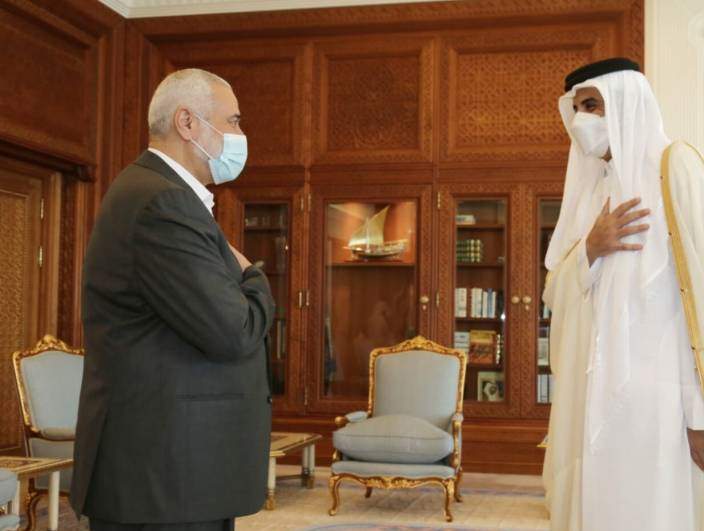 التقى رئيس المكتب السياسي لحركة حماس، إسماعيل هنية، أمير دولة قطر تميم بن حمد آل ثاني.