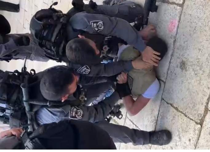 كما اعتقلت شبانا من الأقصى بعد الاعتداء عليهم بالضرب عرف منهم الشاب أنس أبو الحمص.