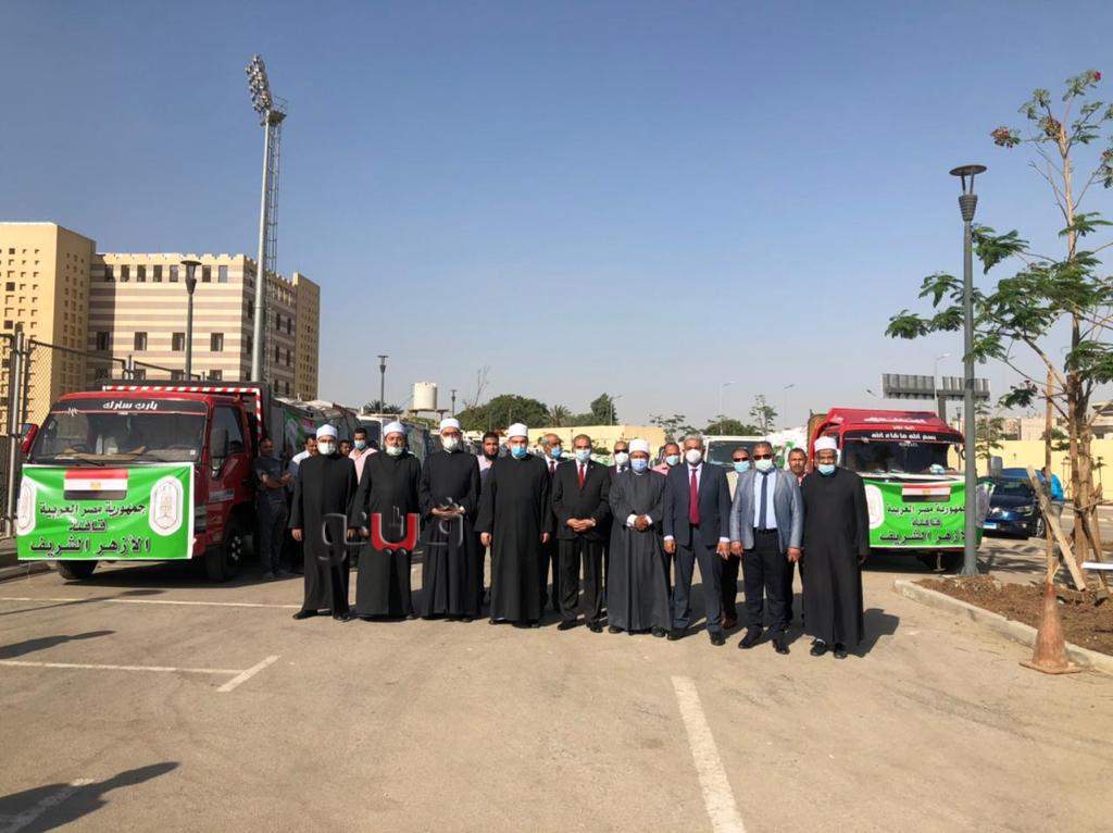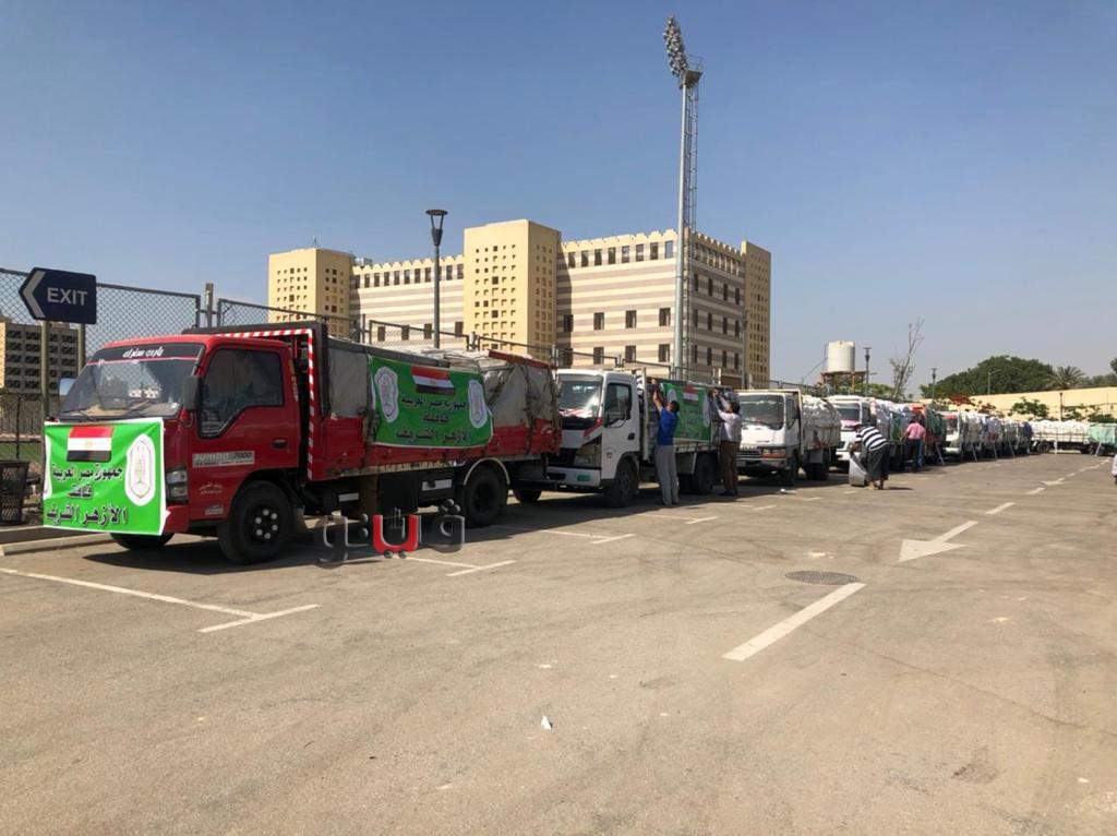 بتوجيهات الإمام الأكبر.. انطلاق أكبر قافلة إغاثية من الأزهر إلى قطاع غزة | صور