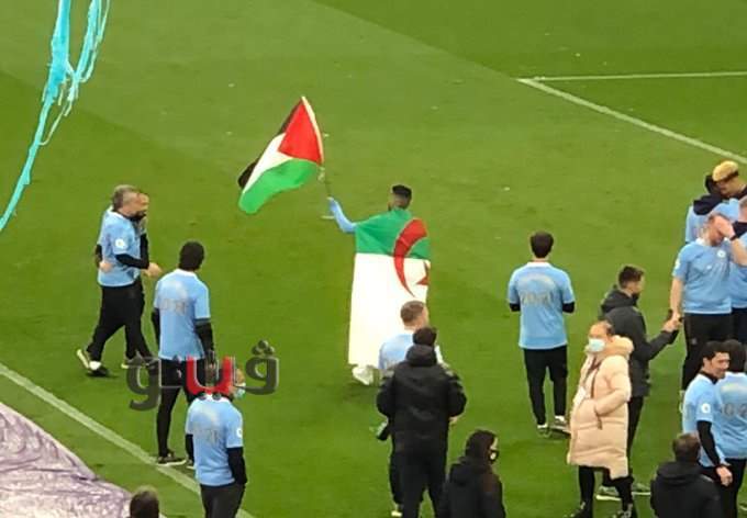 احتفالات مانشستر سيتي الذي رفع اللقب على ملعب الاتحاد بعد حسمه قبل 4 أسابيع من نهايته شهدت مشاركة رياض محرز نجم الجزائر والذي رفع علم فلسطين خلال احتفالات الفريق بالتتويج.
