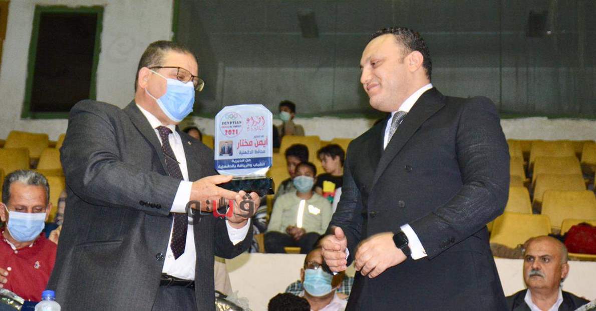 كما قام وكيل وزارة الشباب والرياضة بتسليم درع المديرية إلى الدكتور أيمن مختار محافظ الدقهلية تسلمه نائب المحافظ، وتسليم درع المديرية إلى الدكتور هيثم الشيخ نائب المحافظ تقديرا لجهودهم المتواصلة في دعم الرياضة والرياضيين بالدقهلية.