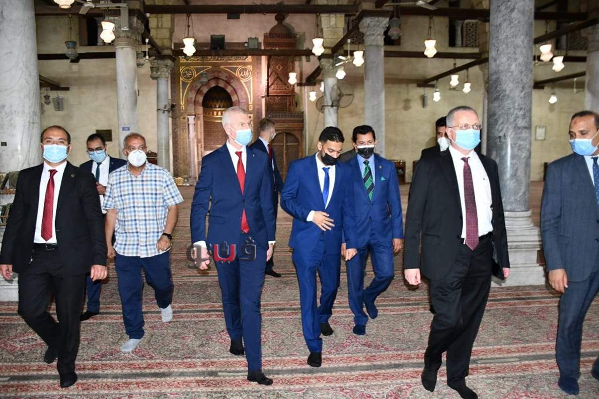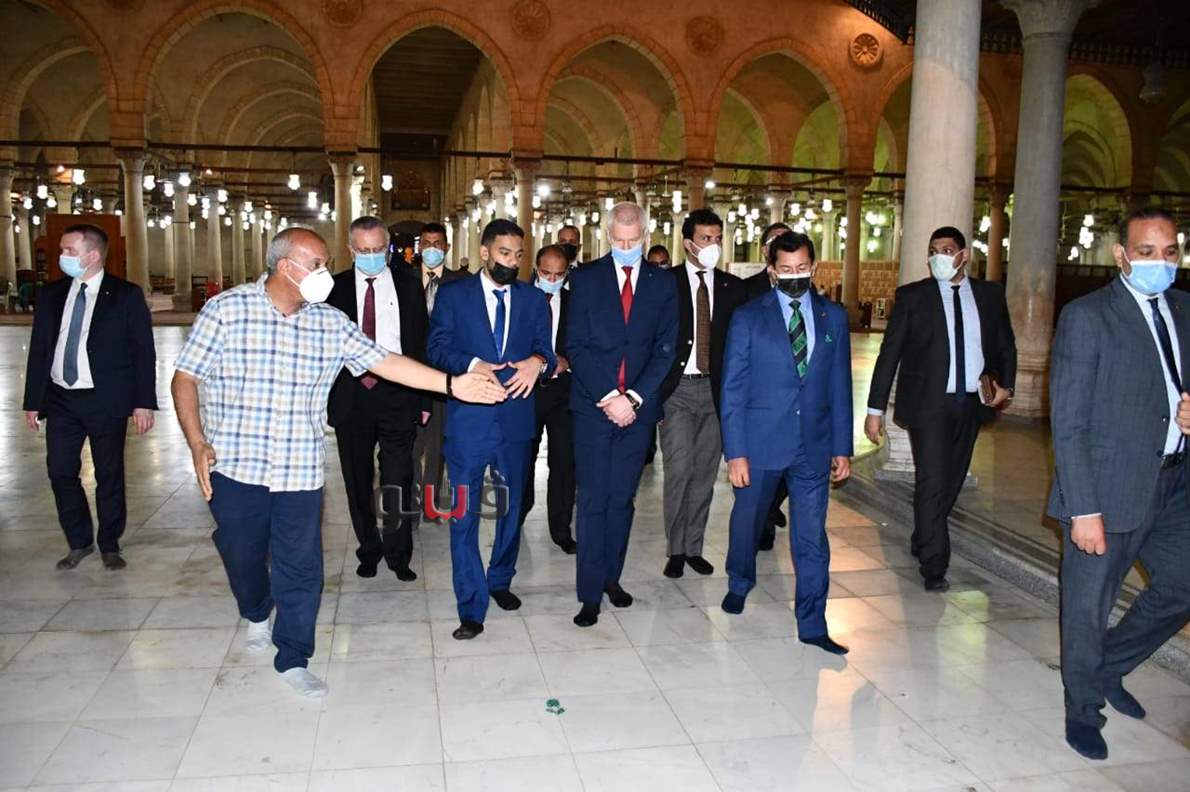 وزير الشباب والرياضة الروسي يزور مجمع الأديان وجامع عمرو بن العاص