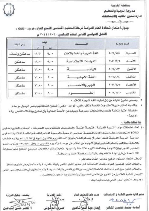 وأعلن المهندس ناصر حسن ان نتيجة الشهادة الاعدادية بالغربية فور الانتهاء من التصحيحات.