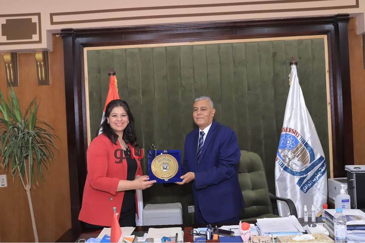 وعقب توقيع البروتوكول، قدم الدكتور يوسف غرباوي درع الجامعة للدكتورة غادة خليل نظرًا للمجهود الذي يبذله مشروع رواد 2030 في دعم الشباب، ولدوره الرائد في نشر ثقافة ريادة الأعمال والعمل الحر بينهم.