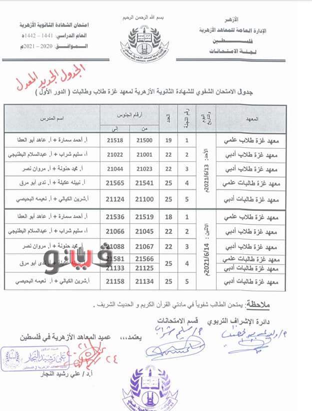 وكانت المعاهد الأزهرية في فلسطين، قررت في وقت سابق تأجيل إمتحانات الثانوية، بسبب الظروف الصعبة التي مر بها قطاع غزة بسبب العدوان الإسرائيلي الهمجي على السكان الآمنين.