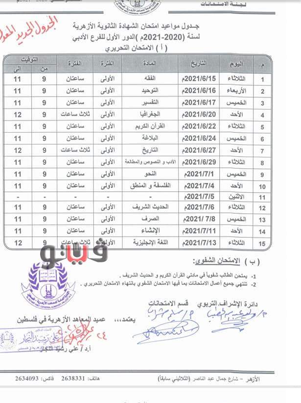 تبدأ امتحانات الثانوية العامة الأزهرية (التحريري ) صباح يوم الثلاثاء ٢٠٢١/٦/١٥م