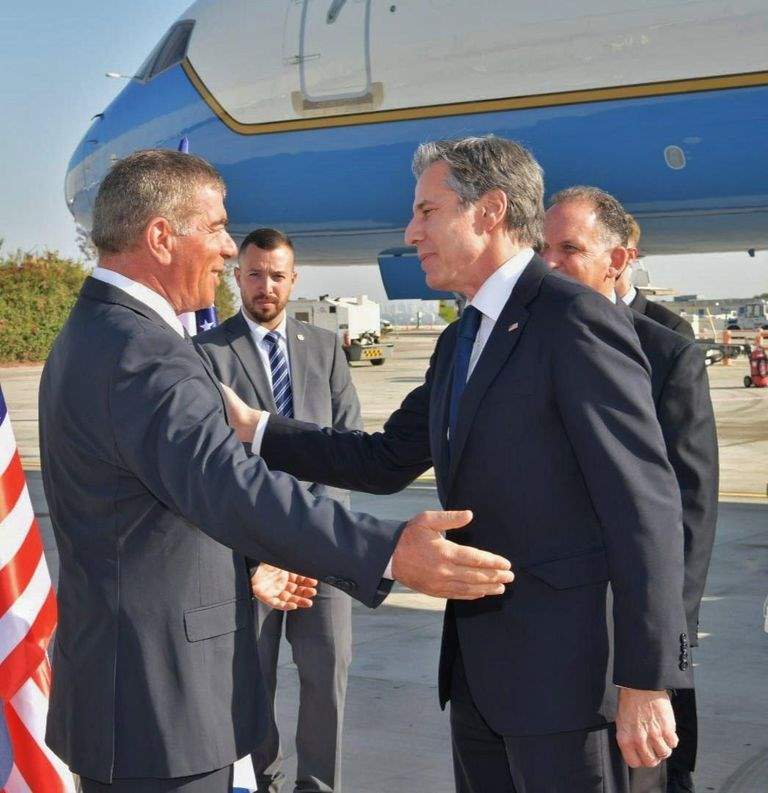 وكان في استقبال بلينكن بمطار بن جوريون، جابي أشكنازي وزير الخارجية الإسرائيلي.