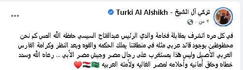 تركي آل الشيخ: السيسي قائد عربي يملك القوة وكرامة القائد العربي الأصيل
